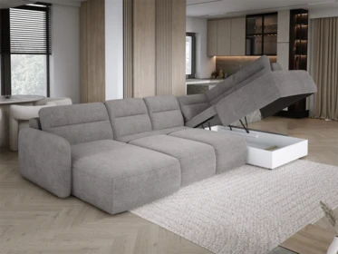 Calvano to funkcjonalny narożnik z funkcją spania i pojemnikiem, idealny dla osób ceniących wygodę, nowoczesne technologie oraz wysoką jakość wykonania.