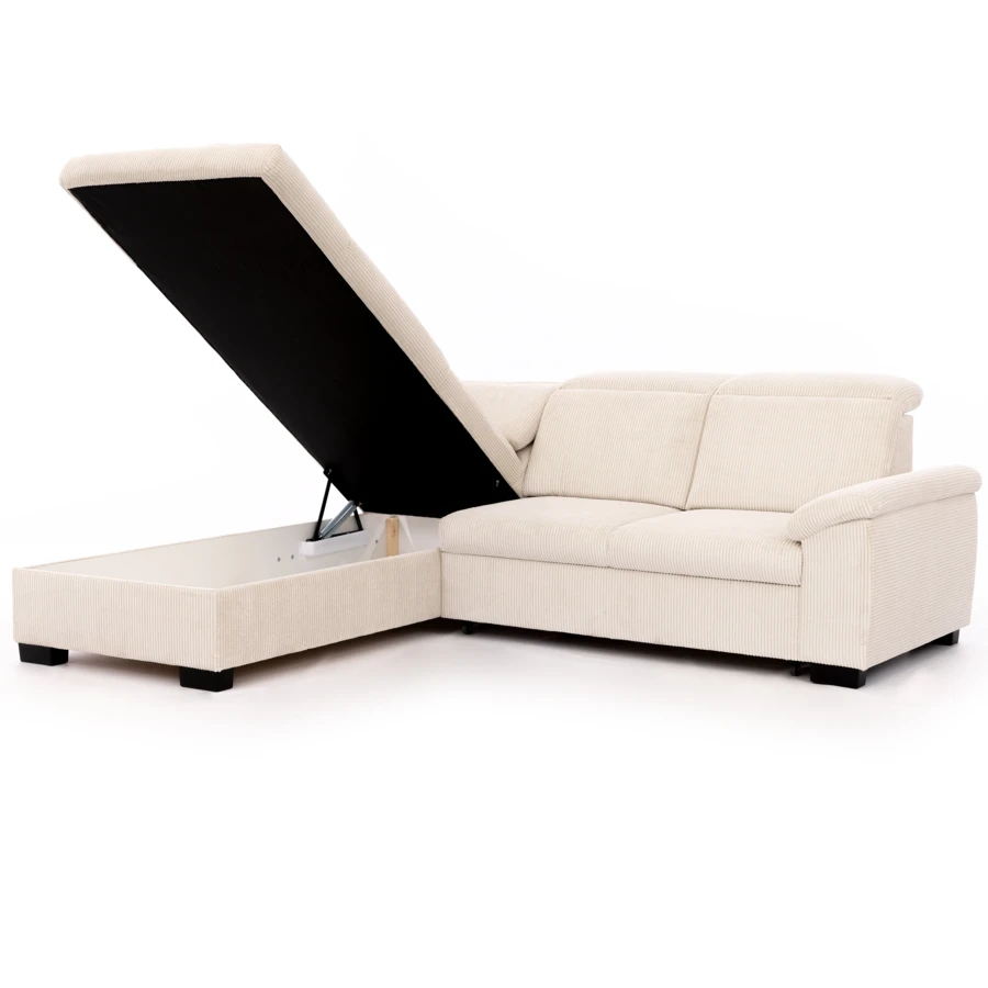 Dodatkowym atutem jest pojemnik na pościel, umieszczony w otomanie, który ułatwia przechowywanie.