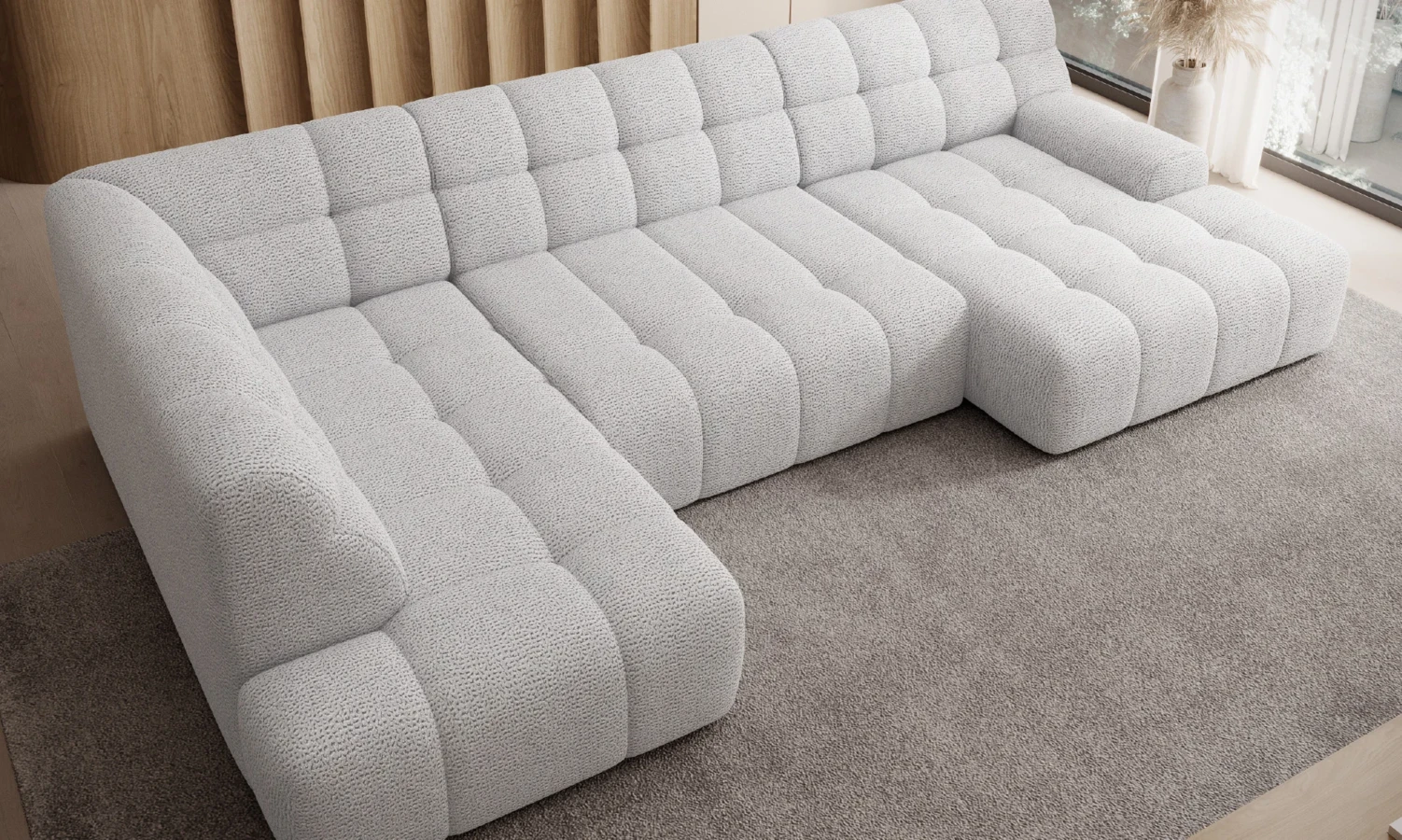 Luksusowy narożnik w kształcie litery U, który zamieni Twój salon w przytulną strefę relaksu.