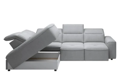 Aby w pełni cieszyć się komfortem wypoczynku, narożnik wyposażono w funkcje relaksacyjne. Siedzisko można wysunąć, a powstałą przestrzeń wykorzystać okazjonalnie do spania.