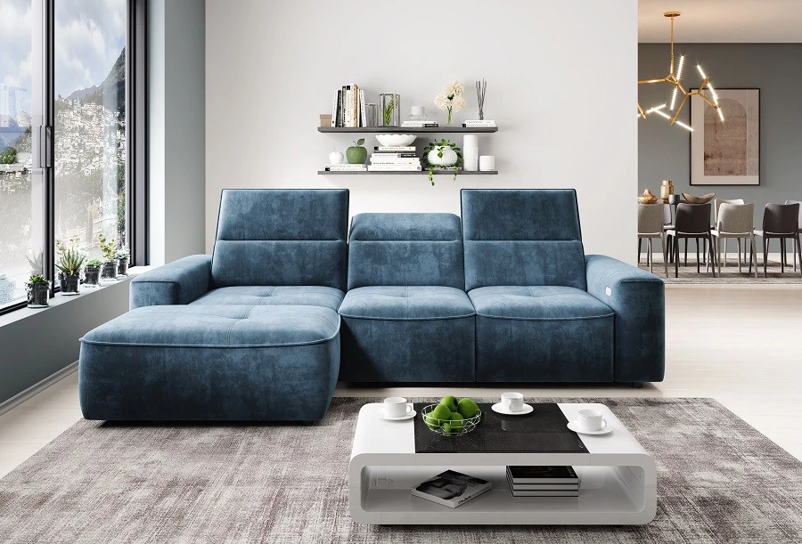 Abyś mógł w pełni cieszyć się komfortem podczas wypoczynku, narożnik został wyposażony w funkcje relaksacyjne. Siedzisko można wysunąć, a powstałą przestrzeń wykorzystać okazjonalnie do spania.