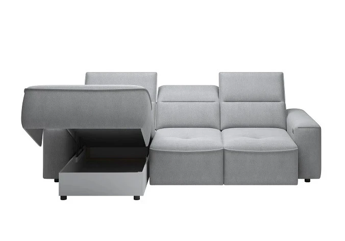 Luksusowy narożnik z pojemnikiem na pościel oraz elektrycznym wysuwem siedziska.