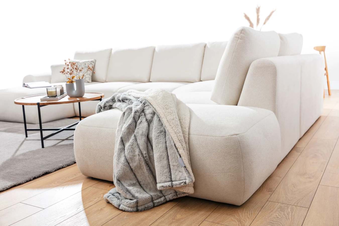 Narożnik w kształcie litery U w nowoczesnym, minimalistycznym stylu.
