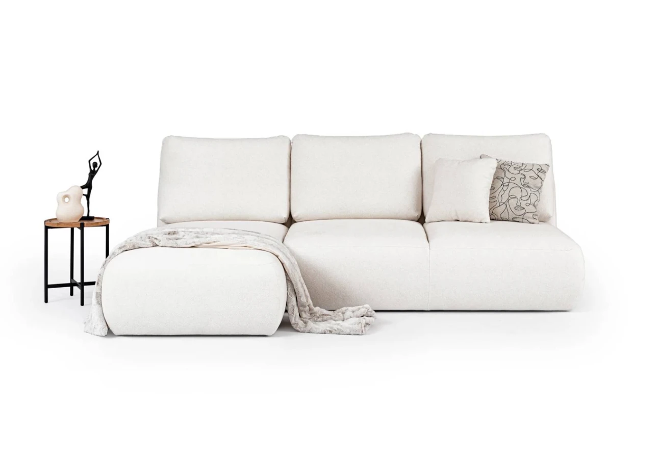 Narożna sofa w kształcie litery L w nowoczesnym, minimalistycznym stylu.