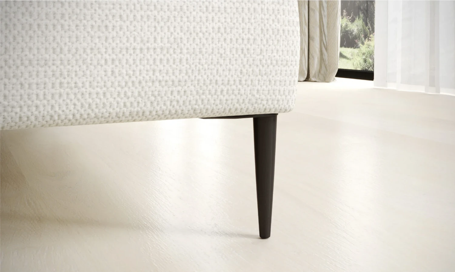 Nowoczesny design podkreślają wysokie, czarne, metalowe nogi.