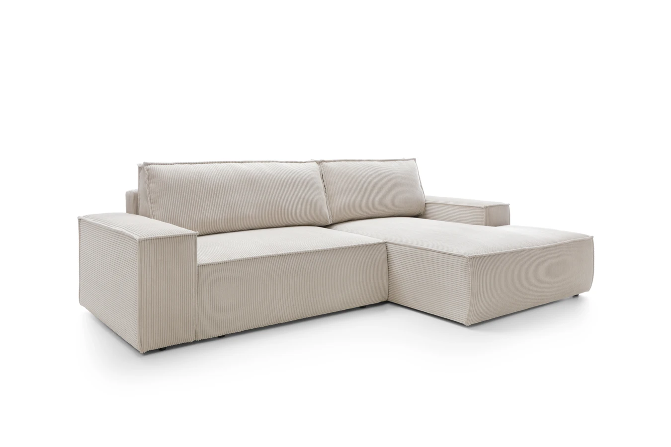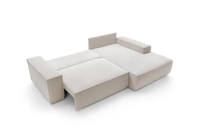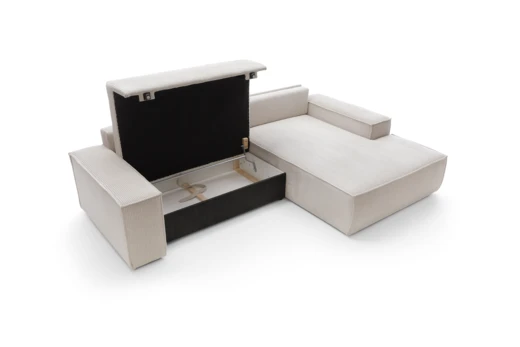 Narożnik można rozłożyć, co umożliwia okazjonalne spanie, a dodatkowo wyposażony jest w duży pojemnik na pościel.