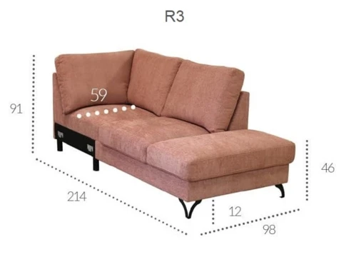 - Głębokość siedziska: 59 cm
