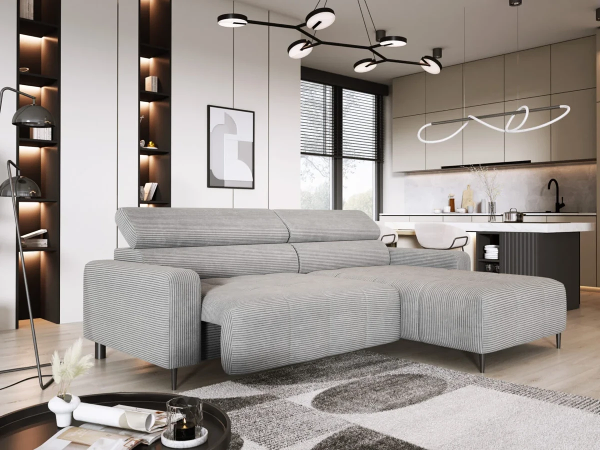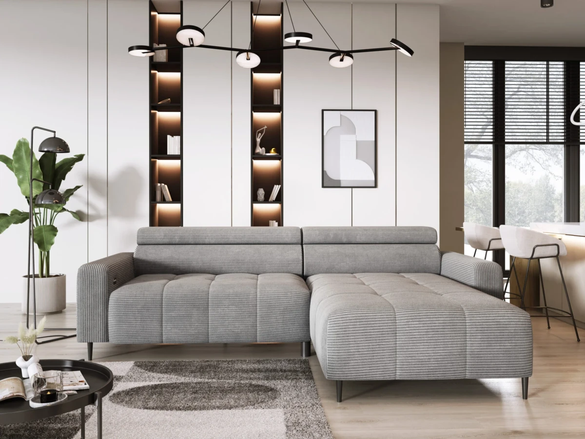 Nowoczesny narożnik z elektrycznym wysuwem to idealna propozycja do stylowego i komfortowego salonu.