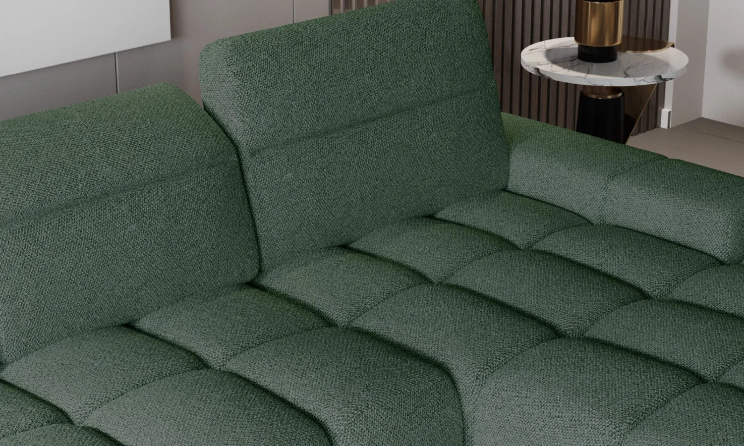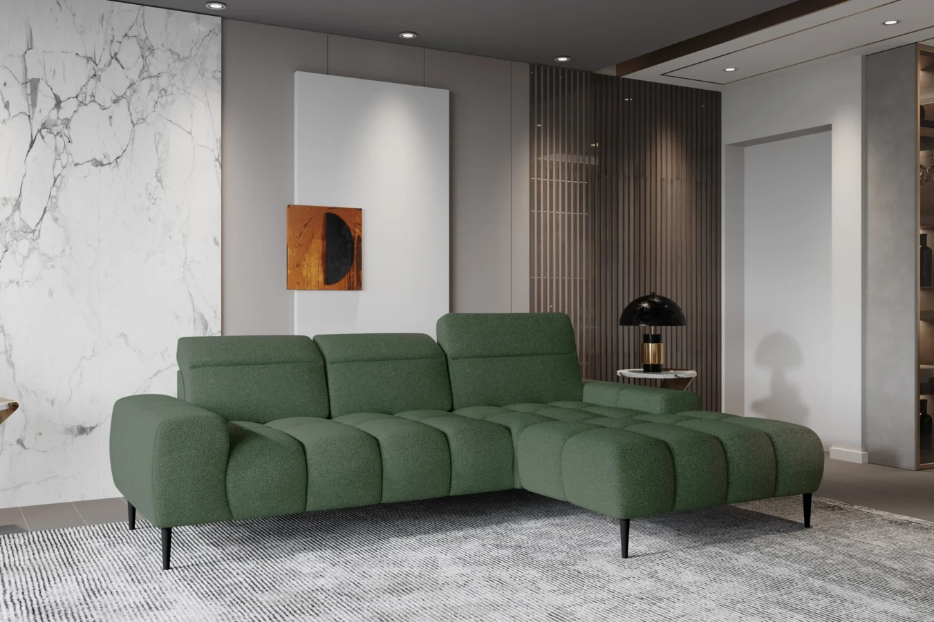 Sofa Giano stoi na minimalistycznych nóżkach o wysokości 15 cm, co docenisz w domu z odkurzaczem automatycznym.
