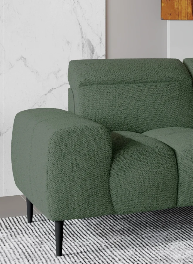 Sofa posiada tapicerowane oparcie , dzięki czemu idealnie wpasuje się w przestrzeń!