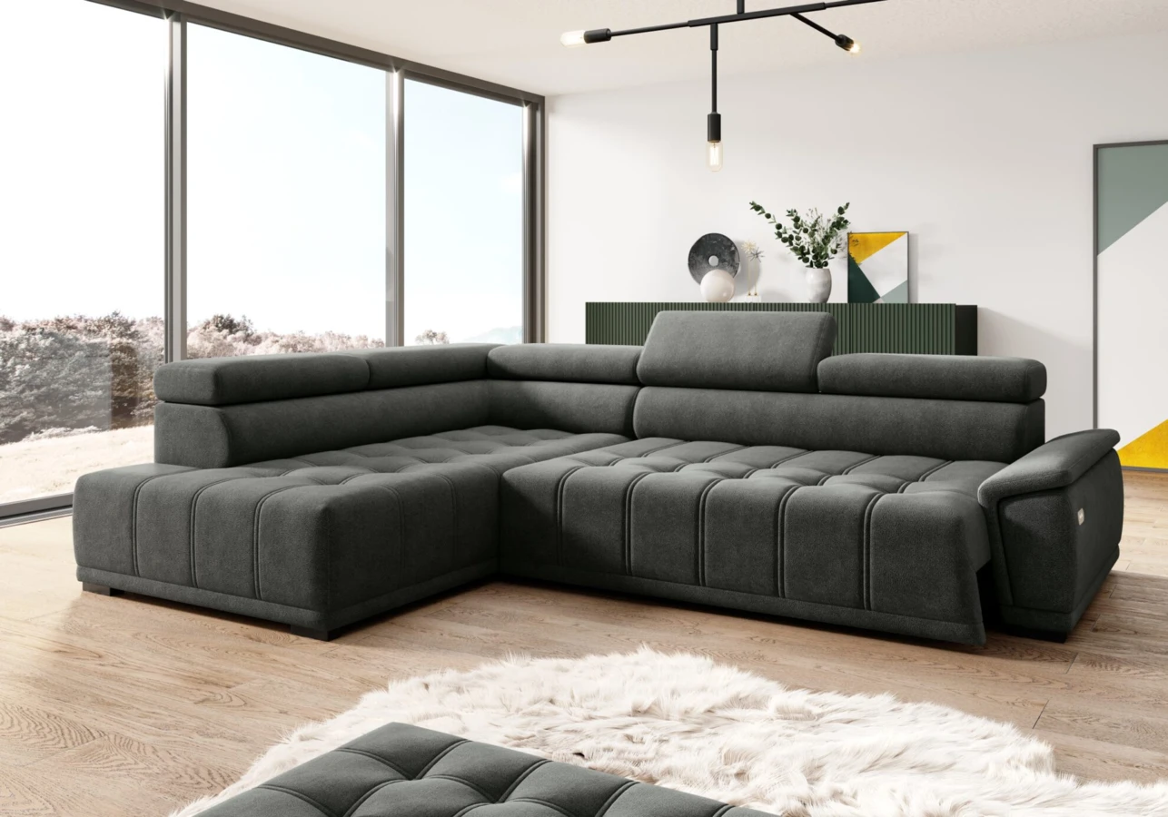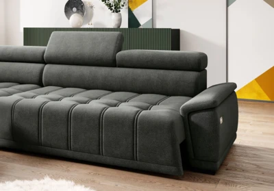 Sofa wyposażona jest w praktyczny mechanizm elektryczny, który umożliwia łatwą regulację głębokości siedziska.