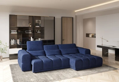 Sofa posiada tapicerowane oparcie, dzięki czemu idealnie wpasuje się w środek pokoju.