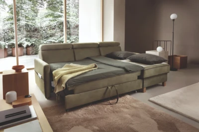 Model wyposażony jest w funkcję spania, która umożliwia szybkie przygotowanie miejsca do noclegu dla gości.