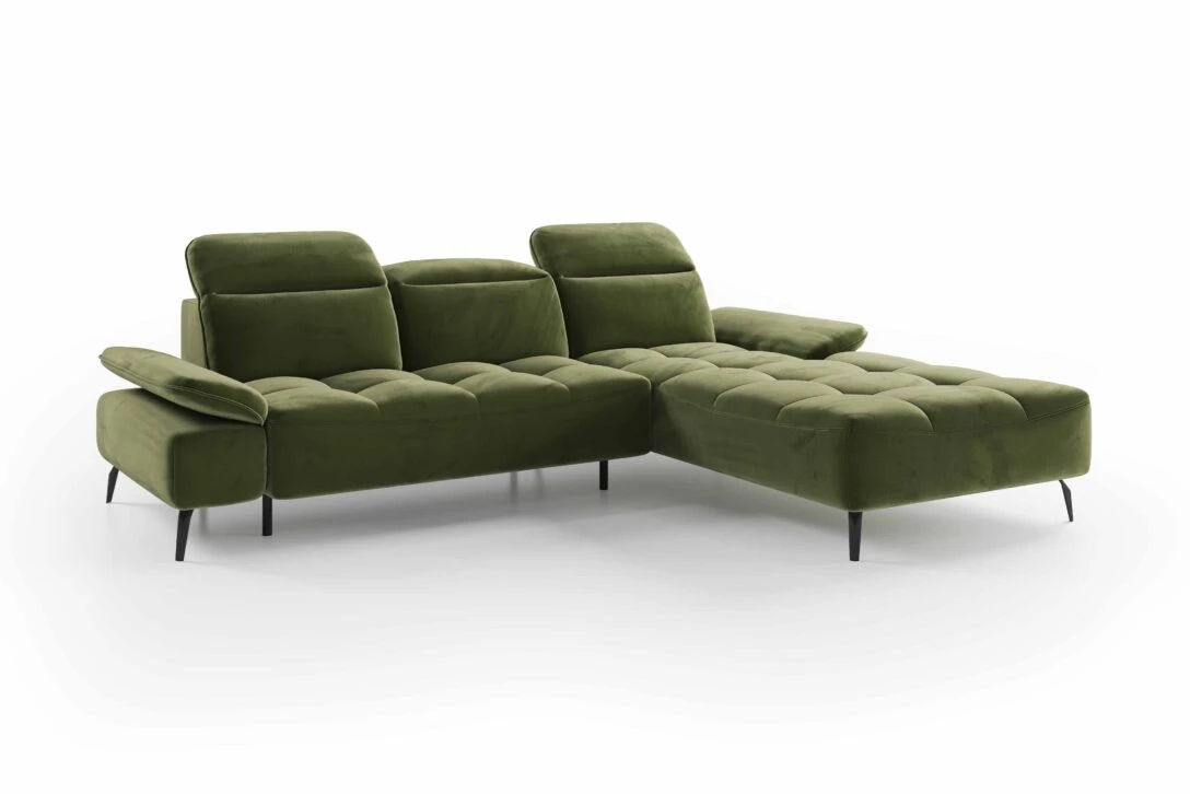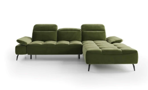 Dla jeszcze większej wygody narożnik wyposażono w regulowane zagłówki i podłokietniki.