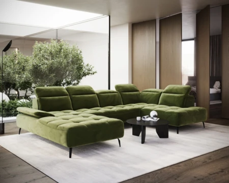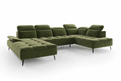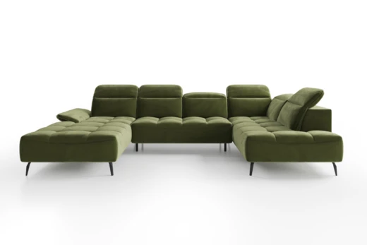 Dla jeszcze większej wygody narożnik wyposażono w regulowane zagłówki i podłokietniki.