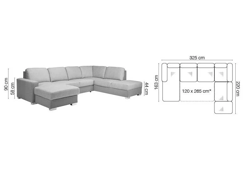 - funkcja spania: 120x265 cm