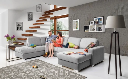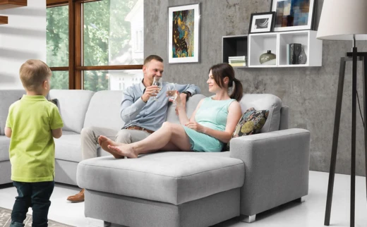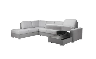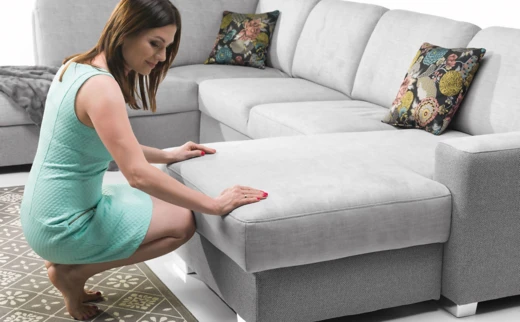 Sofa wyposażona jest w praktyczny schowek znajdujący się w otomanie.