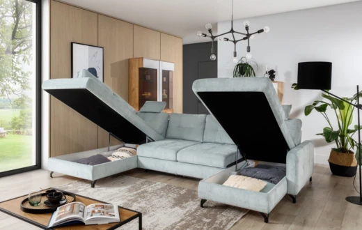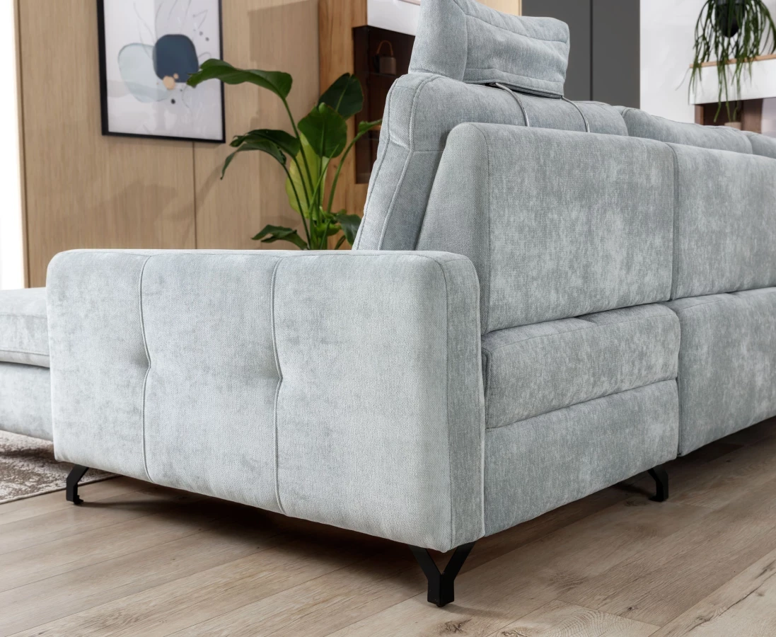 Metalowe nogi gwarantują wytrzymałość i długą żywotność sofy.