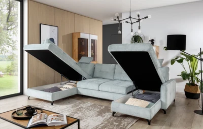 + pojemnik i pościel i funkcja spania + 2 zagłówki