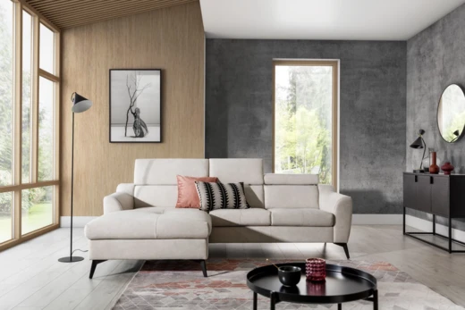 Metalowe nogi gwarantują wytrzymałość i długą żywotność sofy.