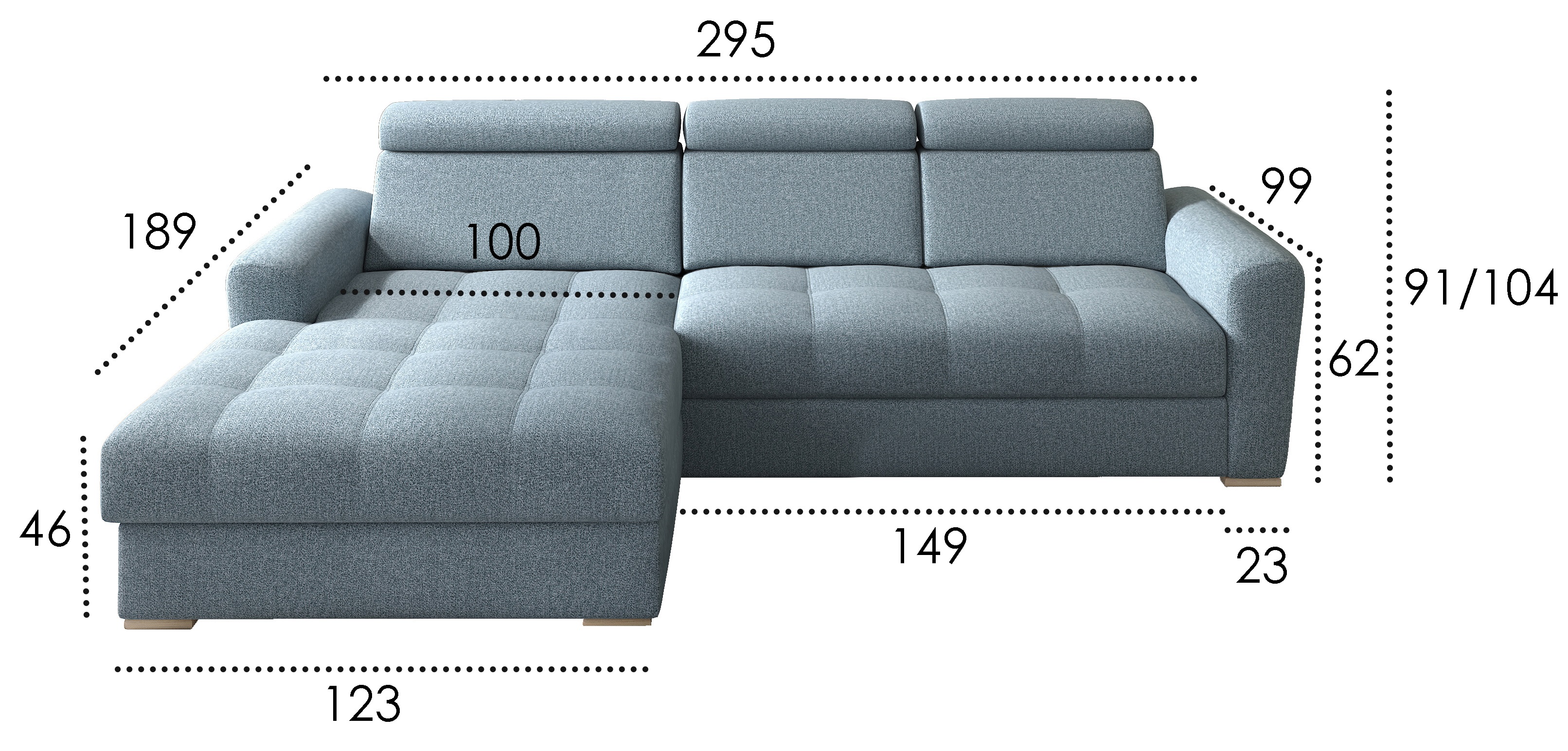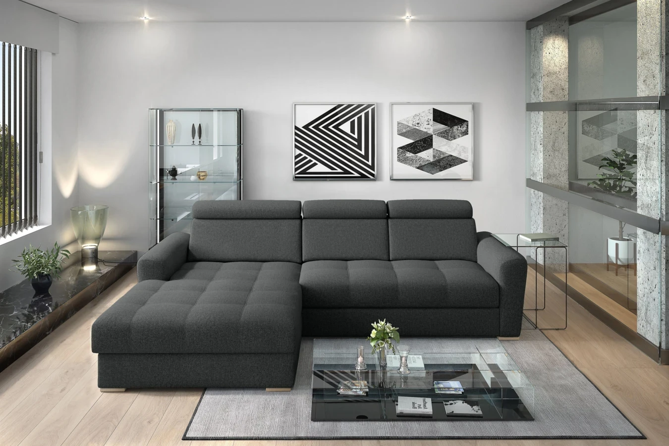 Narożnik wyposażony jest w funkcję spania z mechanizmem typu delfin, która umożliwia szybkie i wygodne rozłożenie.
