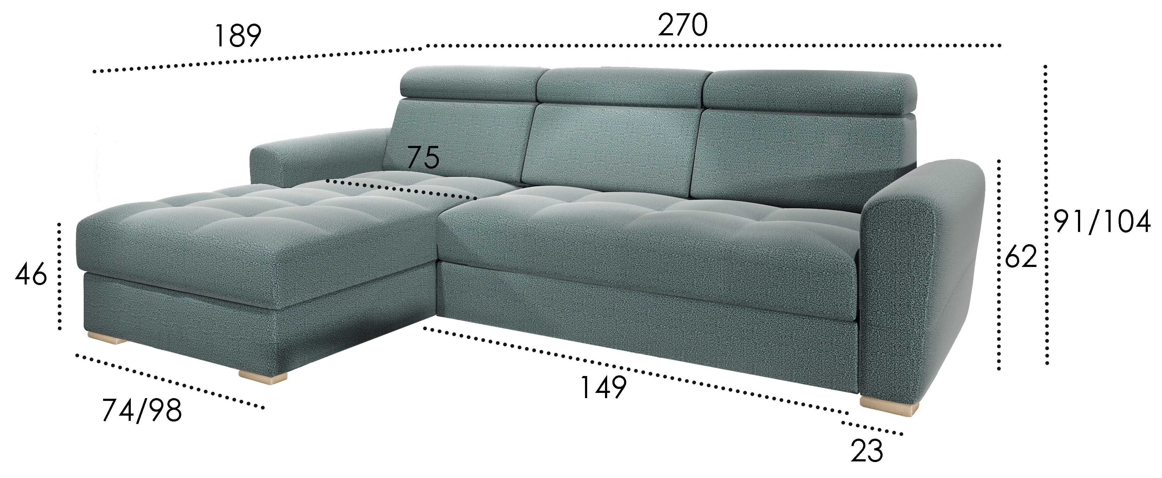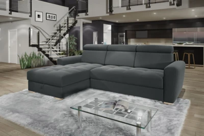 Narożnik wyposażony jest w funkcję spania z mechanizmem typu delfin, która umożliwia szybkie i wygodne rozłożenie.