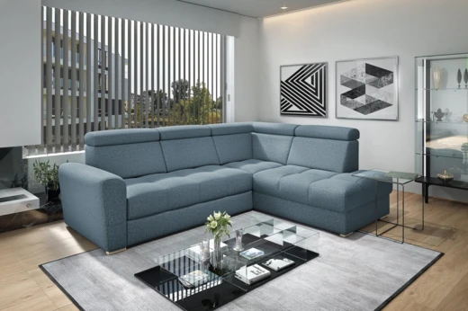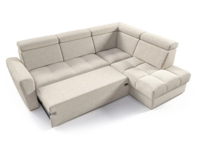 Narożnik wyposażony jest w funkcję spania z mechanizmem typu delfin, która umożliwia szybkie i wygodne rozłożenie.