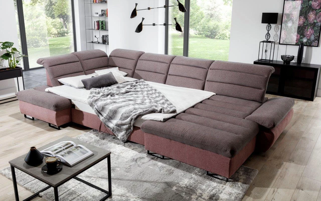 Narożnik wyposażony jest również w praktyczną funkcję spania, którą można szybko rozłożyć dzięki wysuwanym szufladom.