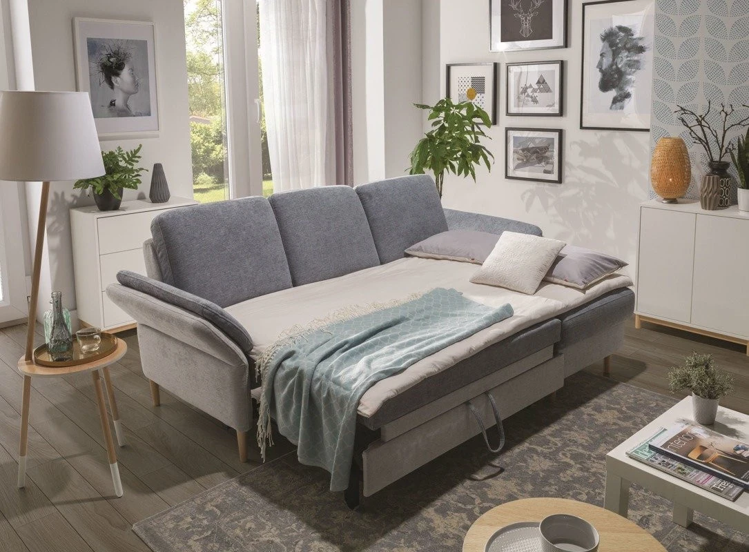 Sofa posiada funkcję rozkładania, co pozwala na okazjonalne spanie, o wymiarach 120x190 cm.