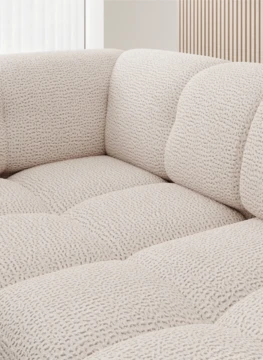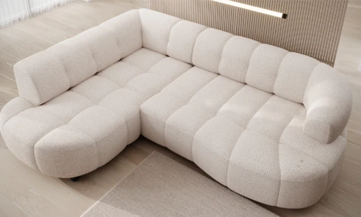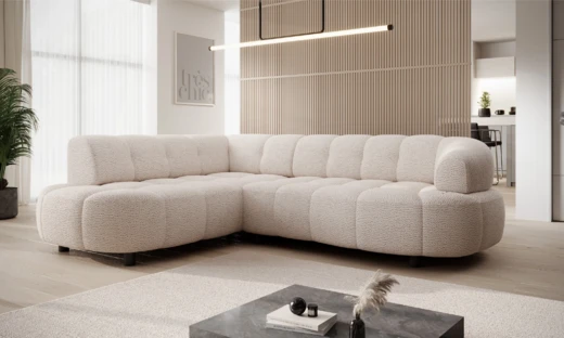 Narożnik ma tapicerowane plecy i eleganckie pikowanie, dzięki czemu doskonale prezentuje się w przestrzeni.