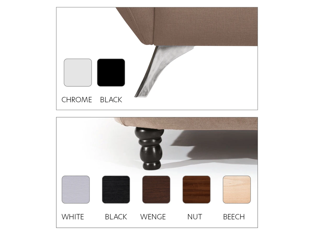 Model nie posiada funkcji spania ani pojemnika na pościel, dzięki czemu zachowuje elegancką,