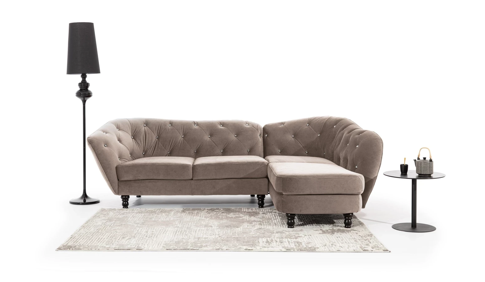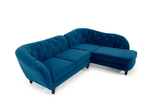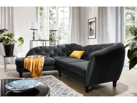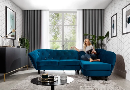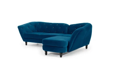Narożnik oferuje również możliwość indywidualnej personalizacji – tapicerkę można wykończyć klasycznymi guzikami w stylu chesterfield