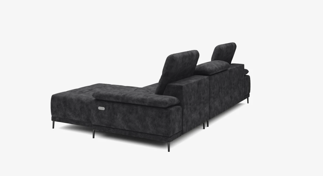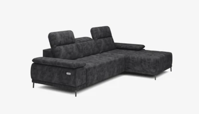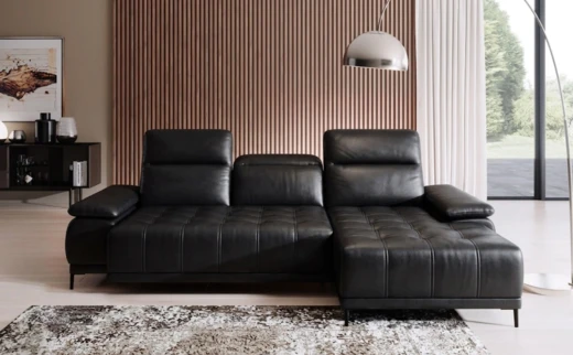 Luksusowa narożna sofa w kształcie litery L z elektrycznym wysuwem.