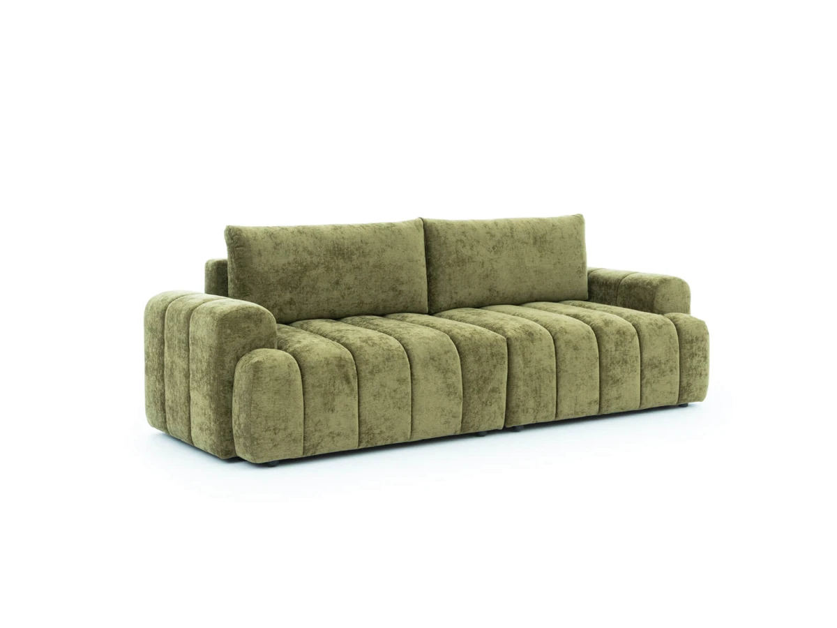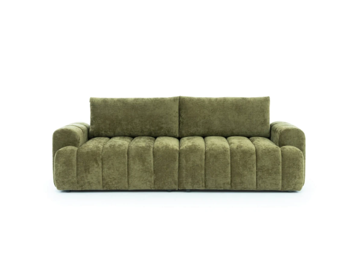 Sofa Anubis DL to nowoczesny i funkcjonalny mebel, który wyróżnia się efektownym designem oraz wysokim komfortem użytkowania. Charakterystyczne pionowe przeszycia oraz miękka, zaokrąglona forma nadają jej wyjątkowego stylu, który doskonale wpisuje się w aranżacje współczesnych wnętrz. Szerokie podłokietniki i głębokie siedziska tworzą komfortową przestrzeń do codziennego wypoczynku.