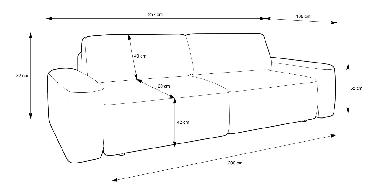 - głębokość siedziska: 60 cm