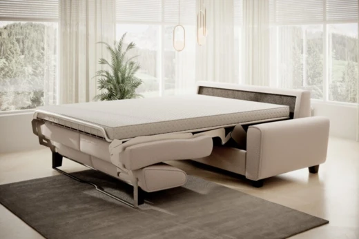 Luksusowa sofa rozkładana z materacem do codziennego spania.