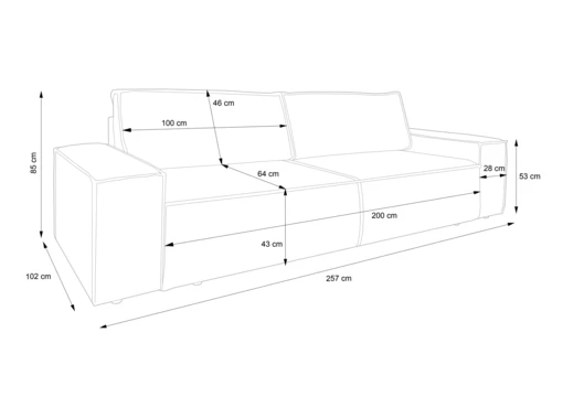 Konstrukcję sofy stanowi lite drewno oraz płyta wiórowa.