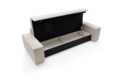 Sofę można rozłożyć, co umożliwia okazjonalne spanie, a dodatkowo wyposażona jest w duży pojemnik na przechowywanie.