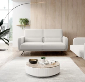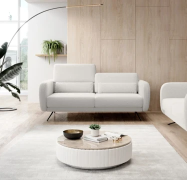 Dwuosobowa sofa oferuje wyjątkowy komfort dzięki połączeniu sprężyn falistych i pianki PUR .