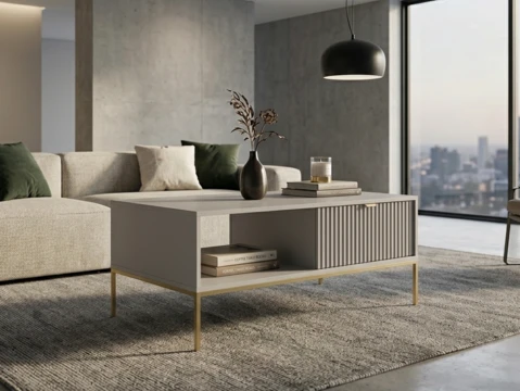 Stół zapewnia praktyczną przestrzeń do przechowywania.