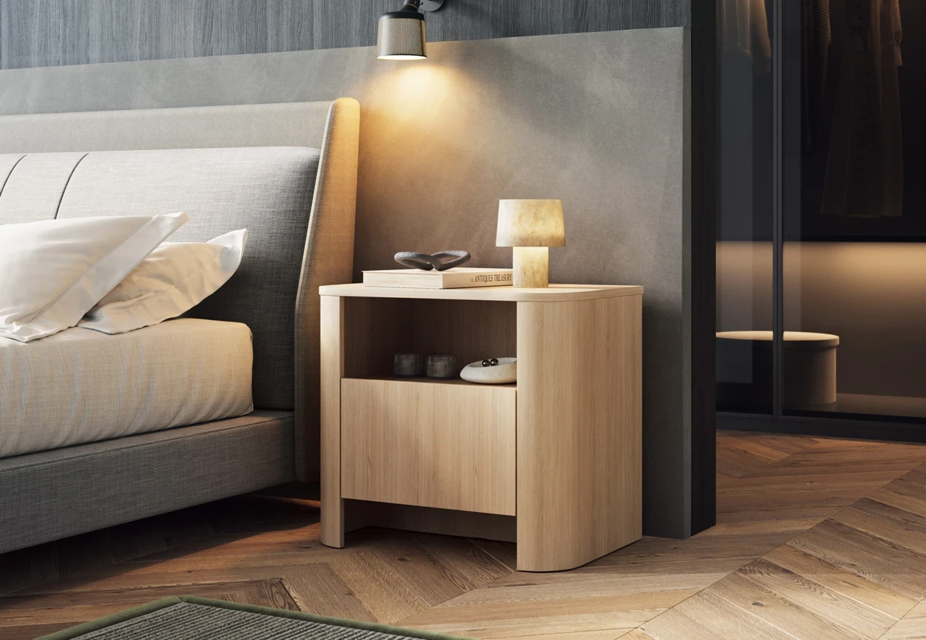 Szuflada wyposażona jest w dotykowy system otwierania typu push-to-open i wykonana jest z wysokiej jakości płyty MDF.