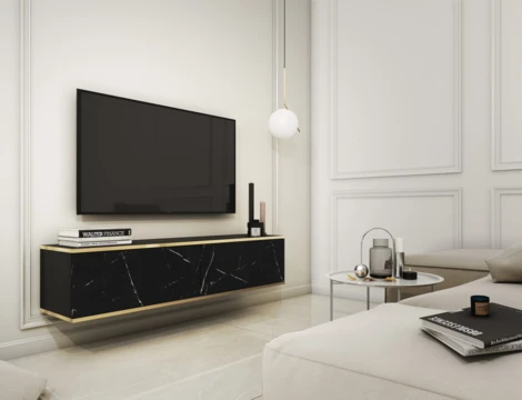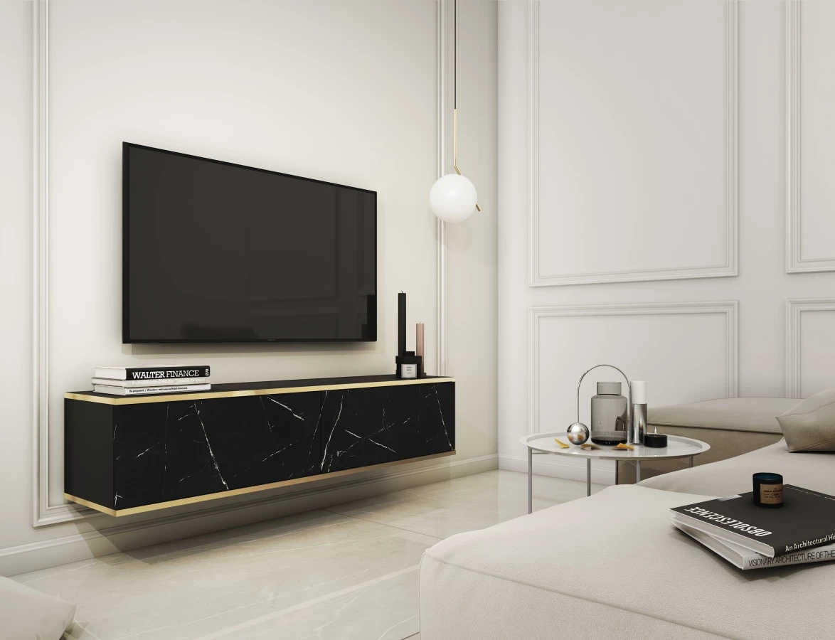 Szafka Oro RTV 135 wisząca - Czarny marmur
