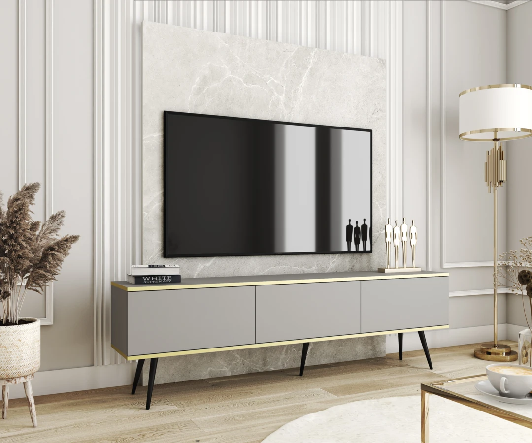 Szafka RTV Oro to idealne połączenie minimalizmu i stylu glamour, które podkreśli nowoczesny charakter każdego wnętrza. Dzięki lekkiej, przewiewnej formie oraz eleganckiemu złotemu wykończeniu stanowi funkcjonalny i dekoracyjny element salonu. Dostępna w różnych kolorach, wymiarach i materiałach, szafka Oro dopasuje się do indywidualnych potrzeb i aranżacji.