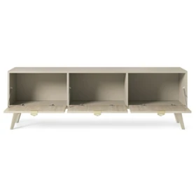 Szafka RTV Forest zapewnia praktyczną przestrzeń do przechowywania sprzętu elektronicznego, a jednocześnie dzięki harmonijnemu designowi stylowo podkreśla aranżację salonu.