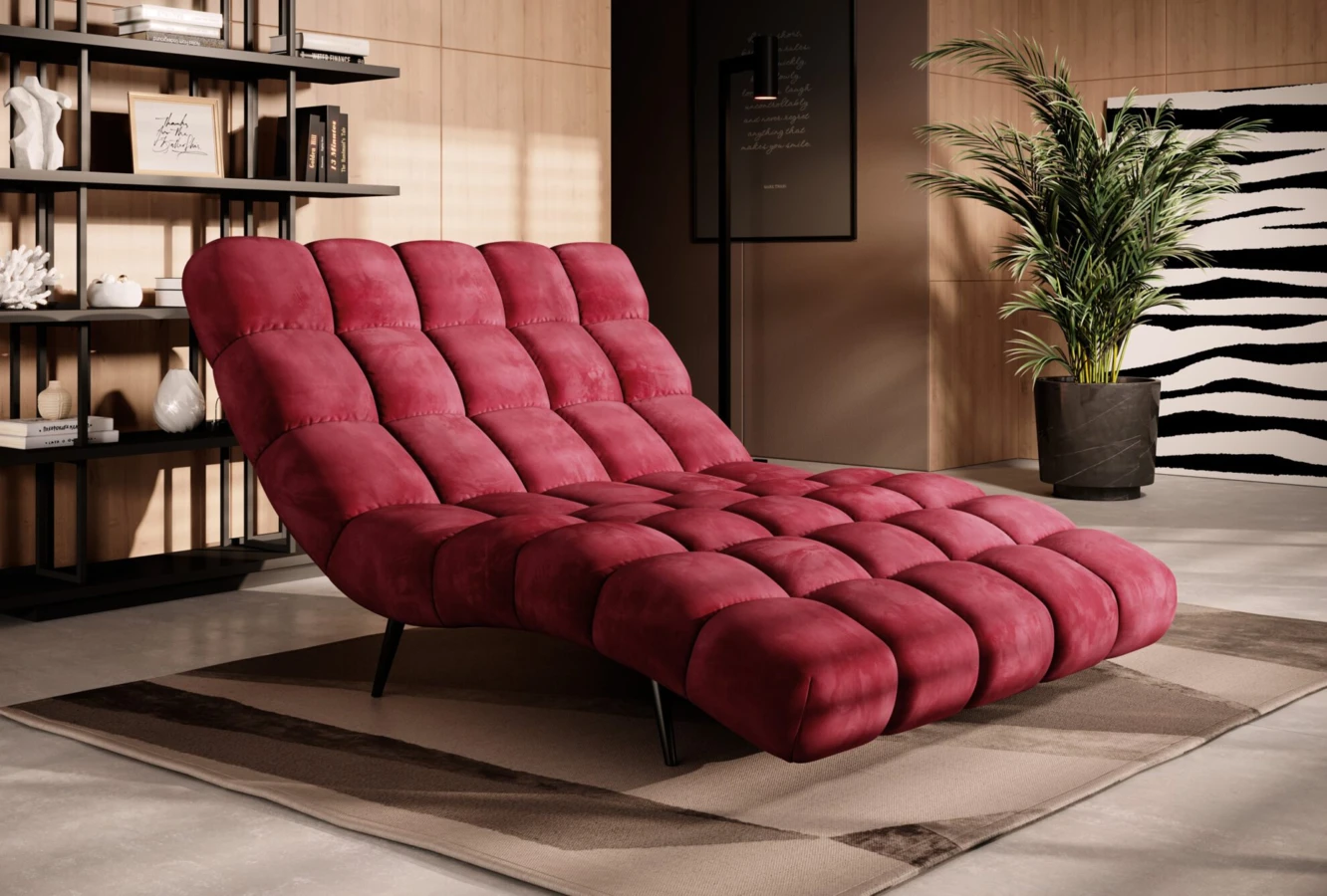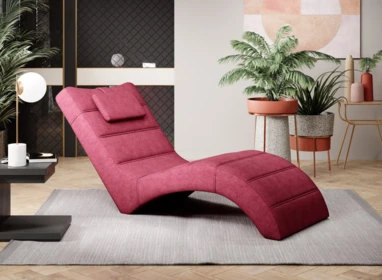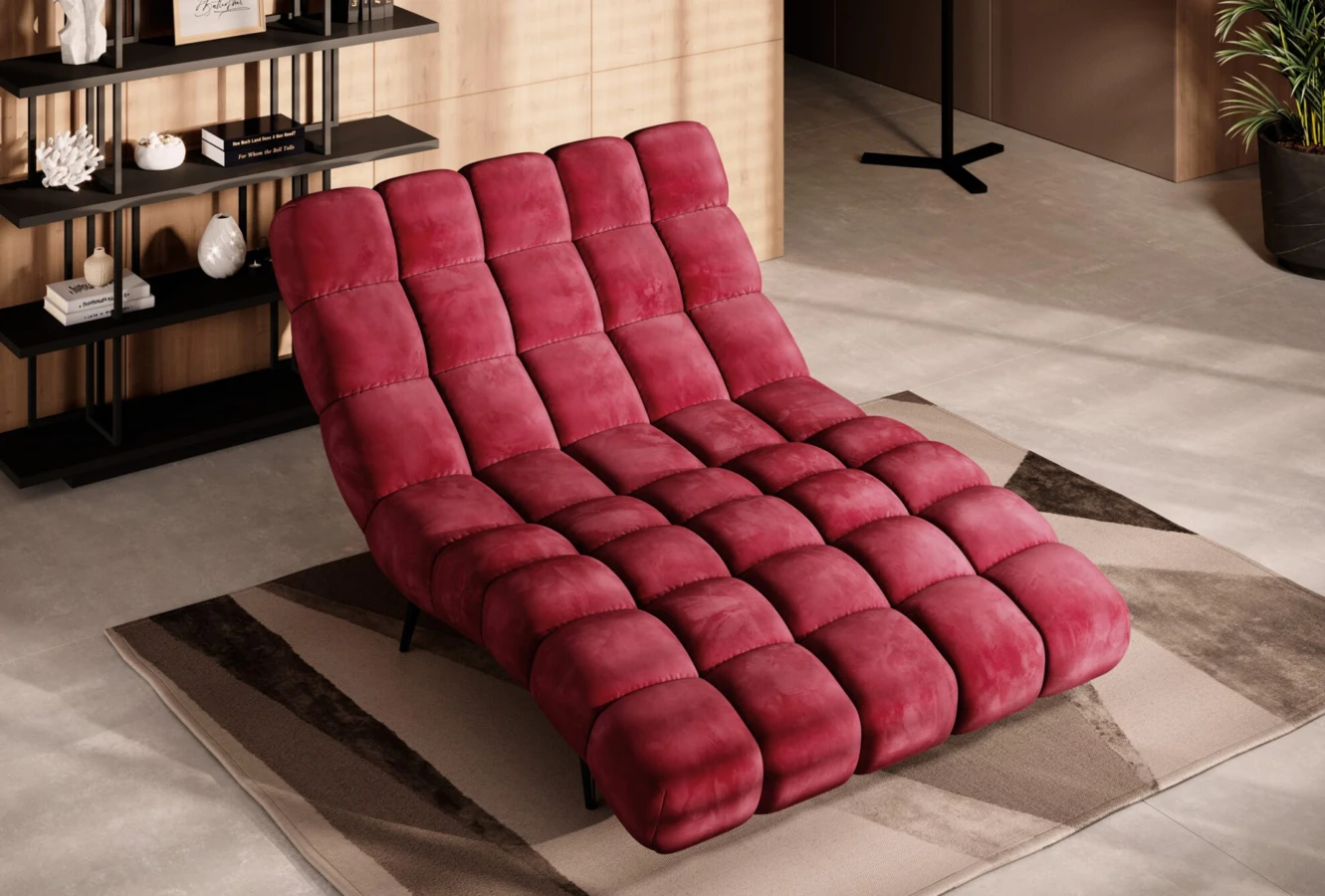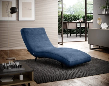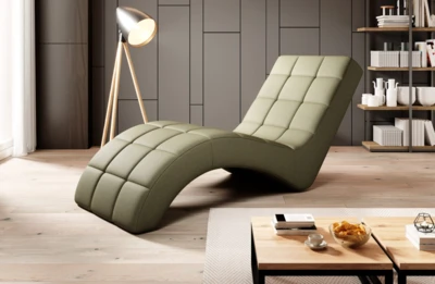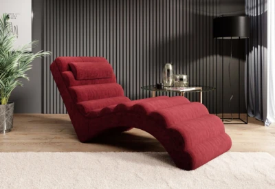 Nowoczesny, tapicerowany fotel typu szezlong, który zapewnia dużo miejsca do relaksu.