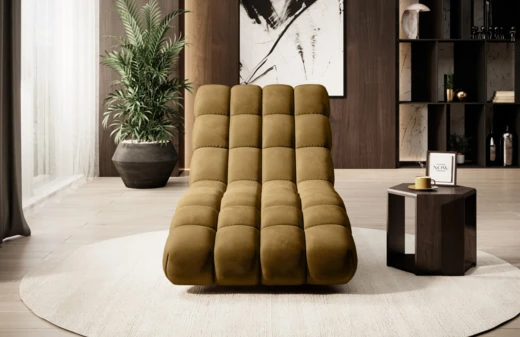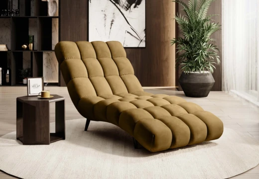 Nowoczesny tapicerowany fotel typu szezlong, pasujący do każdego wnętrza.