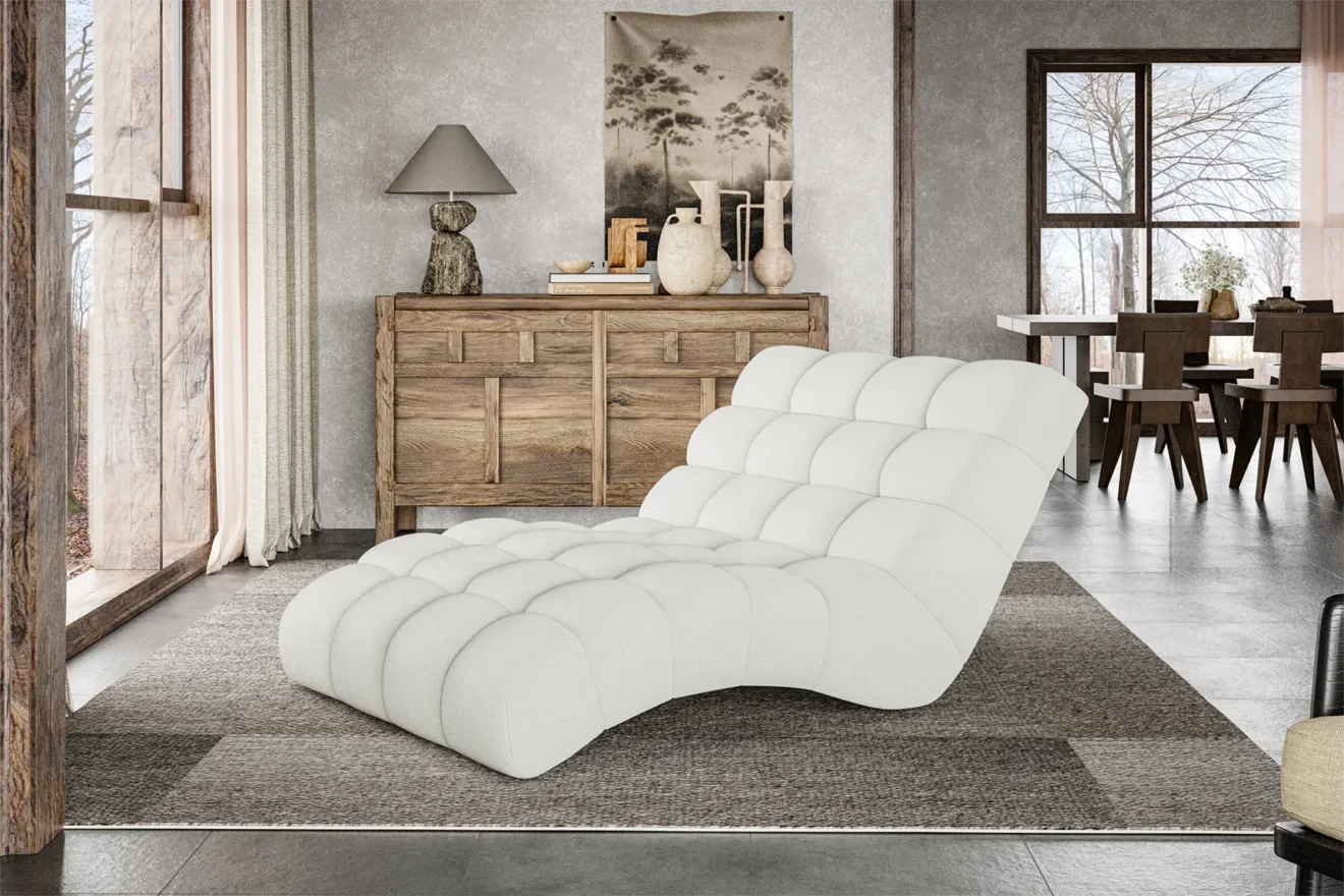 Szezlong Ego to wyjątkowy mebel stworzony z myślą o miłośnikach nowoczesnego designu i komfortowego wypoczynku. Jego charakterystyczna, falująca linia oraz geometryczne, dekoracyjne przeszycia nadają bryle dynamicznego, a zarazem eleganckiego charakteru. To propozycja, która przyciąga wzrok i staje się centralnym punktem aranżacji.