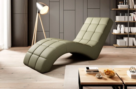 Ta elegancka leżanka jest idealna do relaksu z książką lub dobrą kawą.