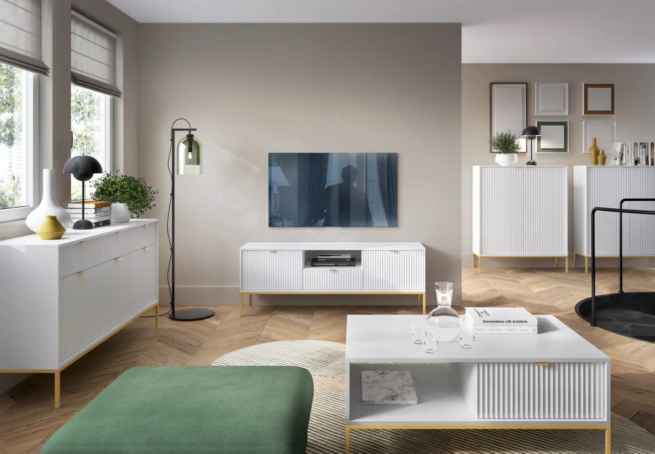 Całościowy wygląd podkreślają nogi wykonane z czarnego lub złotego metalu.