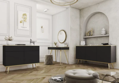 Oro stoi na eleganckich, metalowych nóżkach o wysokości 23 cm . Możesz wybrać wykończenie w kolorze złotym lub czarnym (wyboru dokonaj w konfiguratorze).